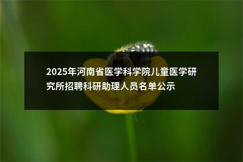 原标题:河南省医学科学院儿童医学研究所2025年公开招聘科研助理人员名单公示